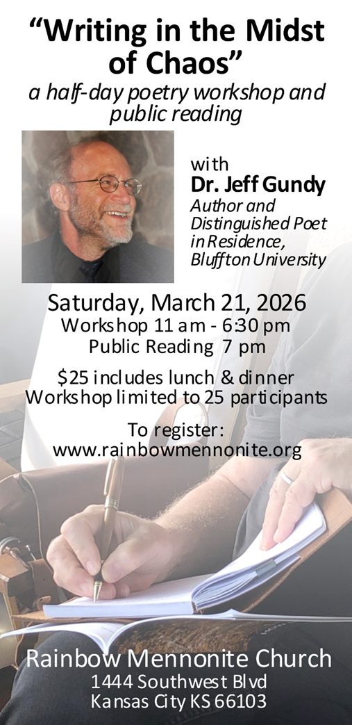 –The Administrative Assistant, Jerry Dowdle, will be working Tuesdays and Thursdays. Please send information you wish to share to peacemennonite@gmail.com. by Monday nights.