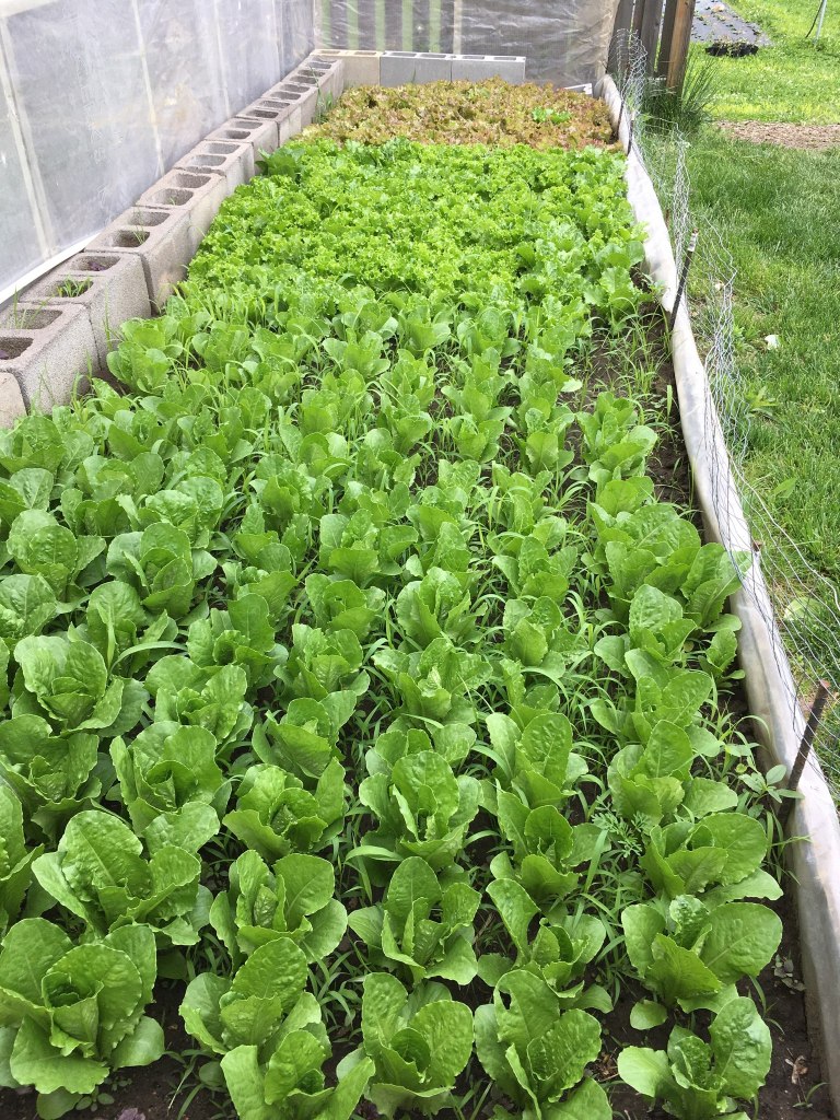 I’m just not that crazy about salad, but I grow lettuce anyway, and sometimes I eat it, and sometimes I sell it at the Farmers Market. That’s what I was going to do this spring—the selling part, I mean. And then Covid-19 presented itself just after I planted my seeds.