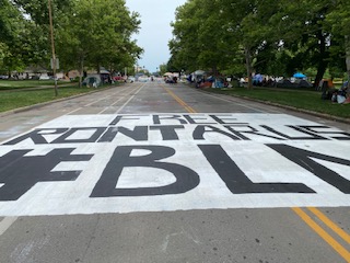 I came home that day and read more about what they were protesting and learned even more about Mr. Rontarus Washington. The following day I returned. I had less fear in my heart but still felt the presence of those who went before me. I still asked, “What am I doing? Am I really putting myself in danger? What if a car attempts to drive through the barricades again or someone starts shooting?” A spiritual voice led me to the line in a hymn that says, “We shall not be moved.”